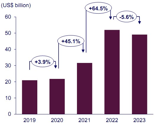 درآمد صادراتی صنعت فتوولتائیک (PV) چین، ۲۰۲۳- ۲۰۱۸
