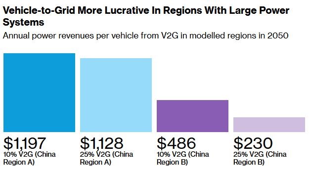 با وجود ده‌ها میلیون خودروی برقی و هیبریدی در جاده‌های چین، این کشور بهترین بستر آزمایشی برای این فناوری محسوب می‌شود. تحلیل‌های اخیر بلومبرگ نیو انرژی فایننس نشان می‌دهد که سیستم برق چین به اندازه‌ای بزرگ است که می‌تواند تخلیه انرژی میلیون‌ها خودرو را پشتیبانی کند و این فرآیند می‌تواند از نظر اقتصادی به گونه‌ای باشد که رانندگان را به مشارکت ترغیب کند.