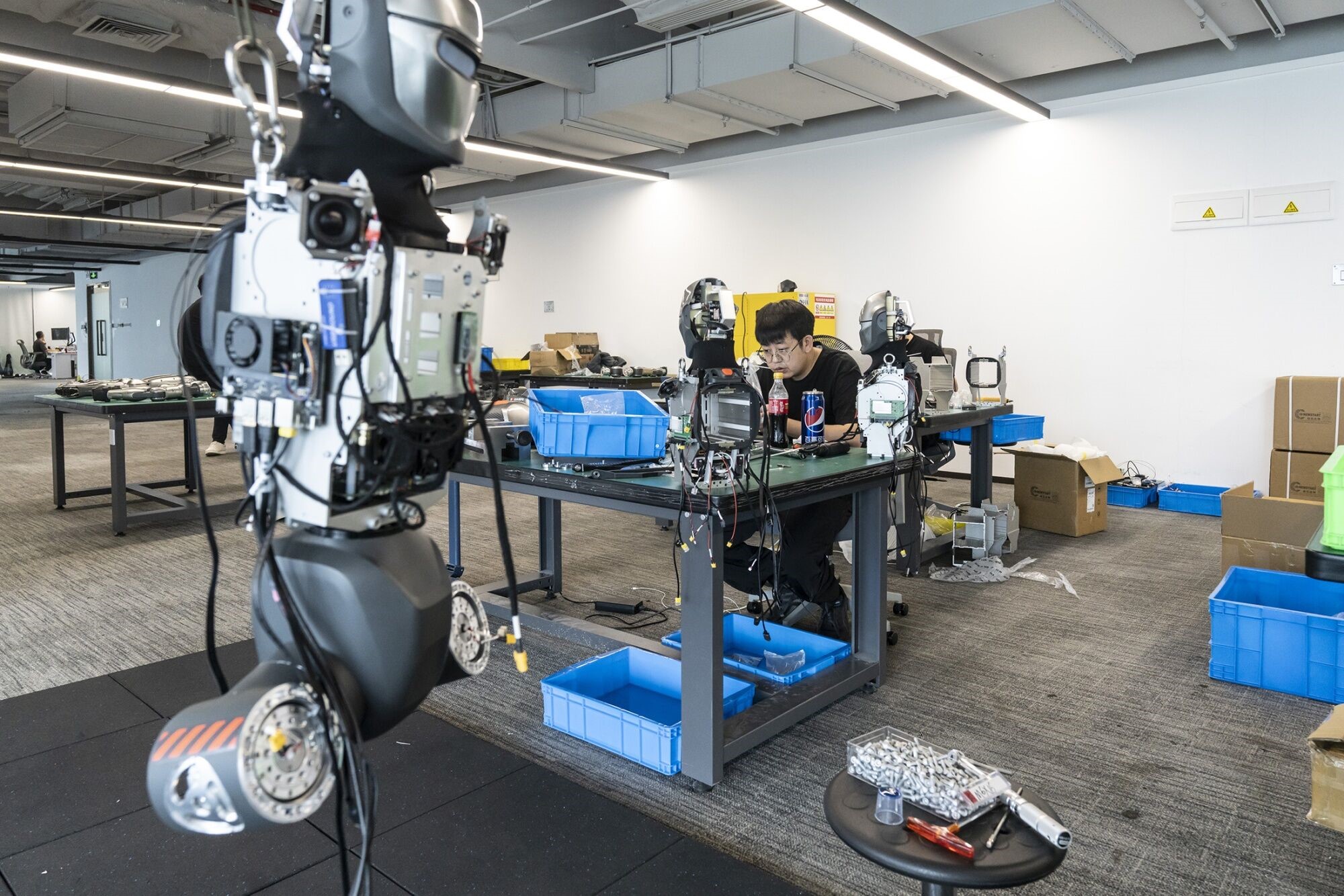 چنین پیشرفتهایی باعث شده رباتهای چینی کمکم وارد دنیای واقعی شوند. شرکت UBTech Robotics مستقر در شنجن، ربات انساننمای ۱۷۰ سانتیمتری خود بهنام Walker S1 را در خطوط تولید آیفون برای شرکت فاکسکان، شریک تجاری اپل، بهکار گرفته است. بیش از ۵۰۰ دستگاه از رباتهای این شرکت در کارخانههای خودروسازی بیوایدی، جیلی و فاو فولکسواگن فعالیت میکنند و وظایفی مانند جابهجایی جعبهها، دستهبندی قطعات و آزمایش ابزارها را انجام میدهند. در کارخانه فاو فولکسواگن، این رباتها نشتی گاز مبرد در سامانههای تهویه مطبوع را شناسایی میکنند، کاری که ممکن است به ریههای انسان آسیب برساند.